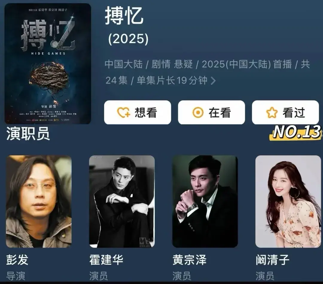先来说说这逆天的演员阵容,简直是“王炸”级别!霍建华,当年凭借《仙剑奇侠传三》里的徐长卿、《花千骨》中的白子画,迷倒了万千少女,这次在《搏忆》中饰演经验丰富、心思缜密的资深刑警苏然。从预告片中就能看出,霍建华的状态相当在线,眼神里满是故事,随便一个镜头,都能把人带入到紧张刺激的剧情中。