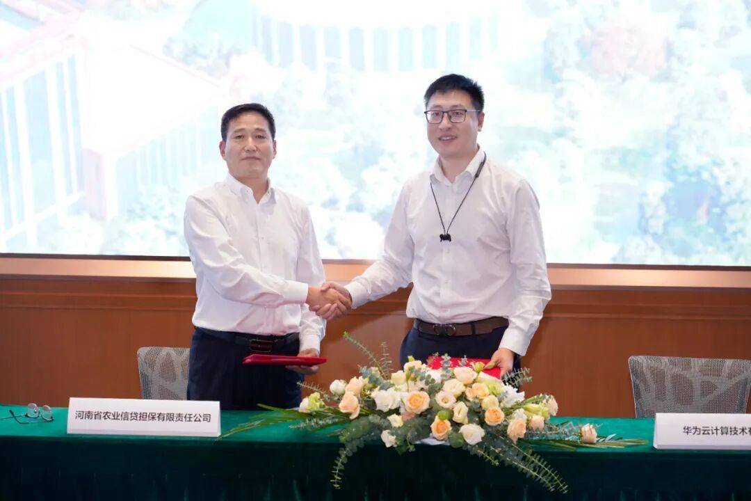 签约仪式上,河南农担公司党委书记、董事长张旻晟,华为云河南业务部部长董雪彬分别代表双方签约,标志着双方将围绕数字化平台迭代、AI风控模型构建、算力资源支撑、数字化人才培养等领域建立长期稳定的合作机制,共同探索科技赋能农业担保的新路径、新模式。
